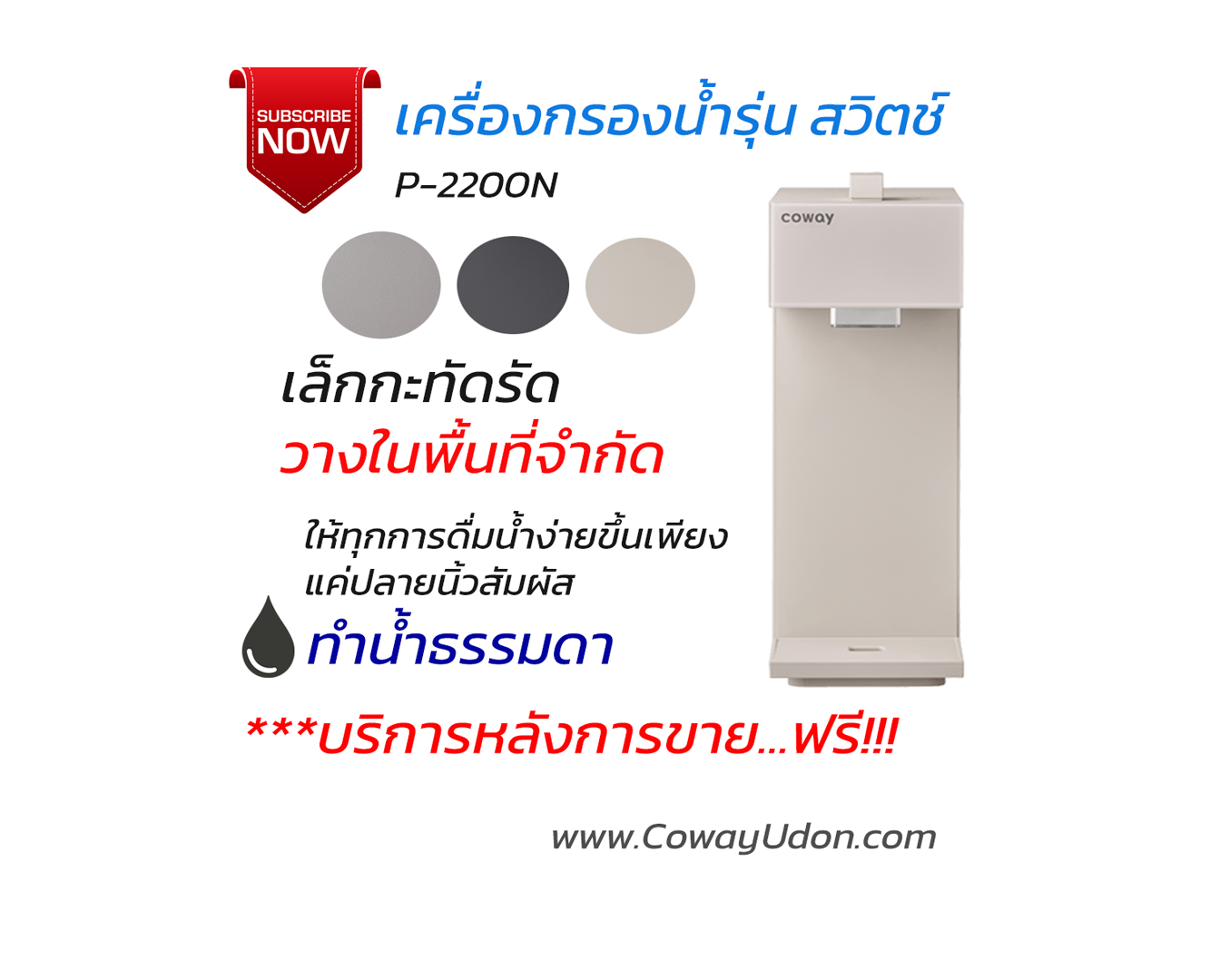 เครื่องกรองน้ำ Coway รุ่นสวิตซ์ Switch เครื่องกรองน้ำ Coway รุ่นสวิตซ์ ระบบกรองน้ำนาโนแทป / ทำน้ำอุณหภูมิปกติ 399฿ 299 ฿ Monthly เดือนที่ 1-7 : 299 บาท/เดือน เดือนที่ 8-84 : 399 เดือน บริการทุก 4 เดือน…ฟรี บริการ Herat Service นาน 7 ปี สั่งซื้อสินค้า…คลิ๊ก!!! ลด 50 % คุณสมบัติเฉพาะ :    – ระบบกรอง นาโนแทป   – น้ำอุณหภูมิห้อง   – ดีไซน์บางเฉียบ กว้างเพียง 11 ซม. เหมาะกับทุกห้อง เล็ก กระทัดรัดพร้อมระบบสัมผัส กรองน้ำที่อุณหภูมิห้อง เครื่องกรองน้ำรุ่น Swifch … Read more