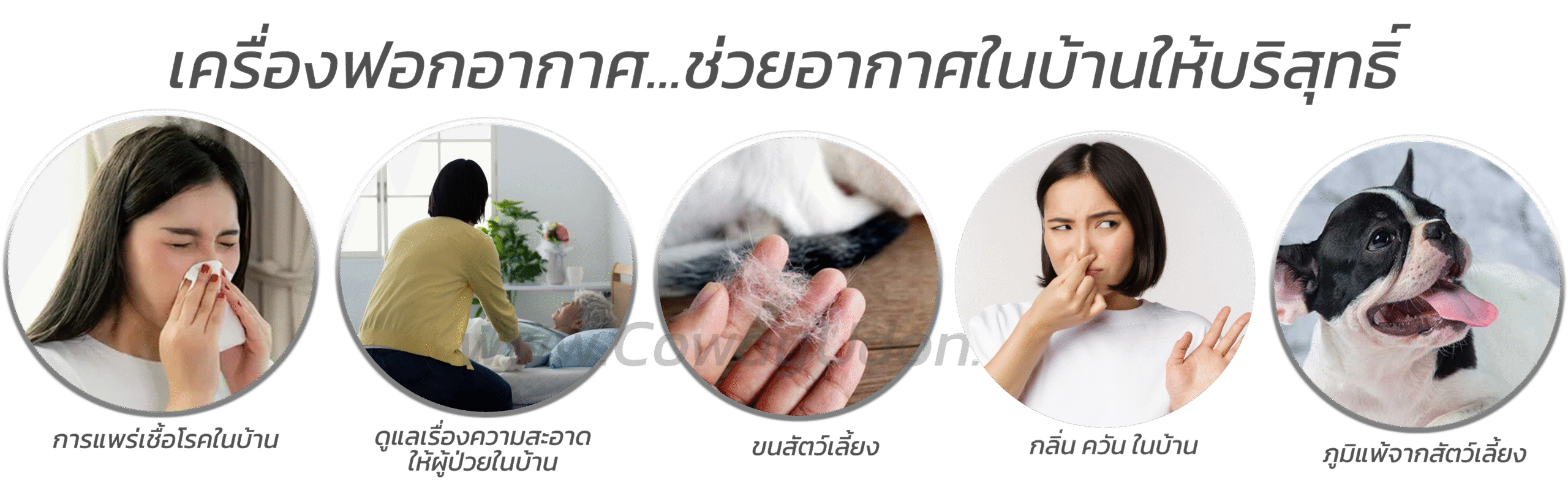 กำจัดฝุ่นละอองขนาดเล็ก (PM1.0, PM2.5, PM10) ไวรัส แบคทีเรีย และกลิ่นไม่พึงประสงค์