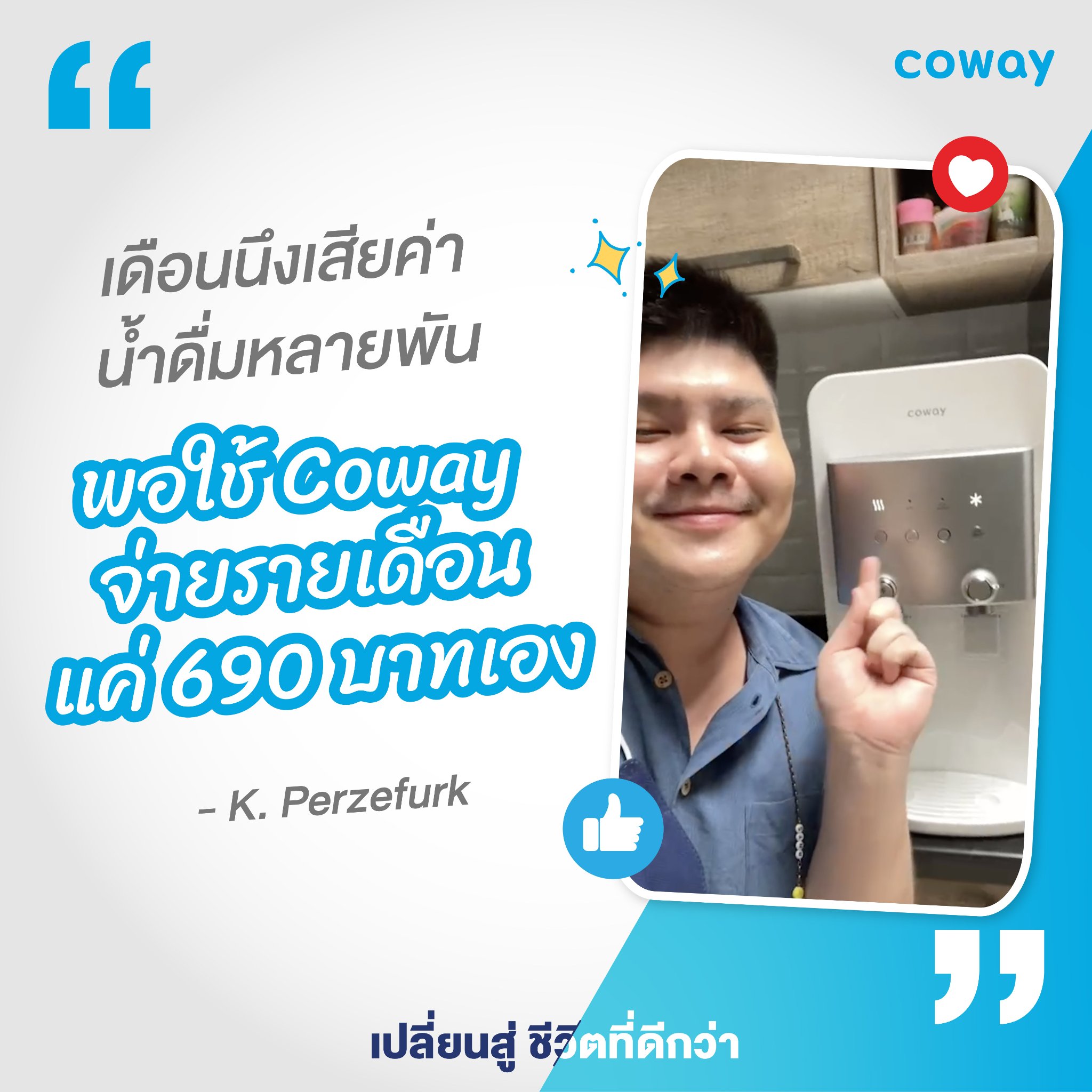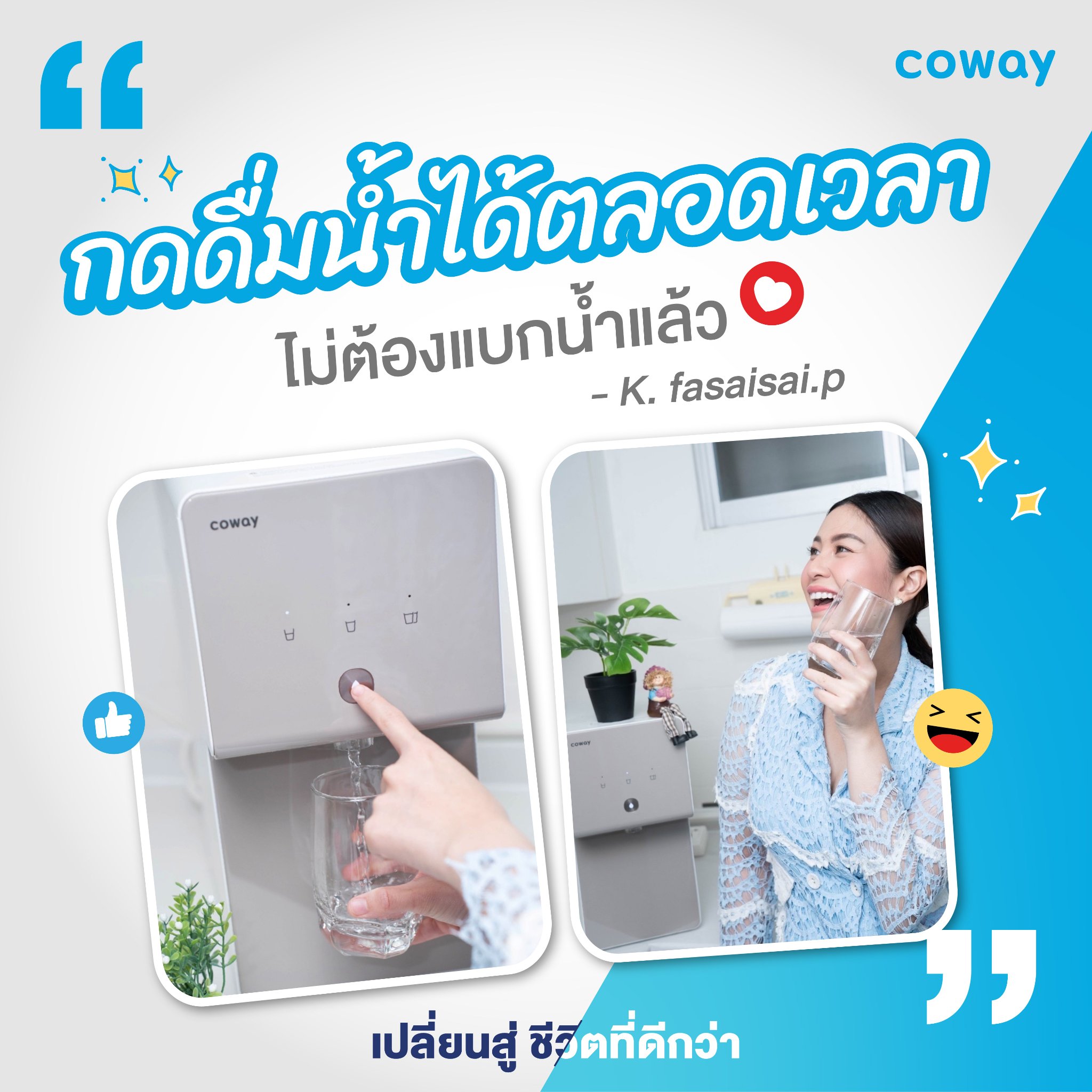 ตั้งแต่มี Coway เข้ามาเกือบๆ 1 ปี ก็ทำให้ผมดื่มน้ำได้ง่ายขึ้น และประหยัดไปตั้งเยอะ หิวนํ้าเมื่อไหร่แค่คว้าแก้ว กด ดื่ม ขออวยเลยคร้าบบบ 👍👍