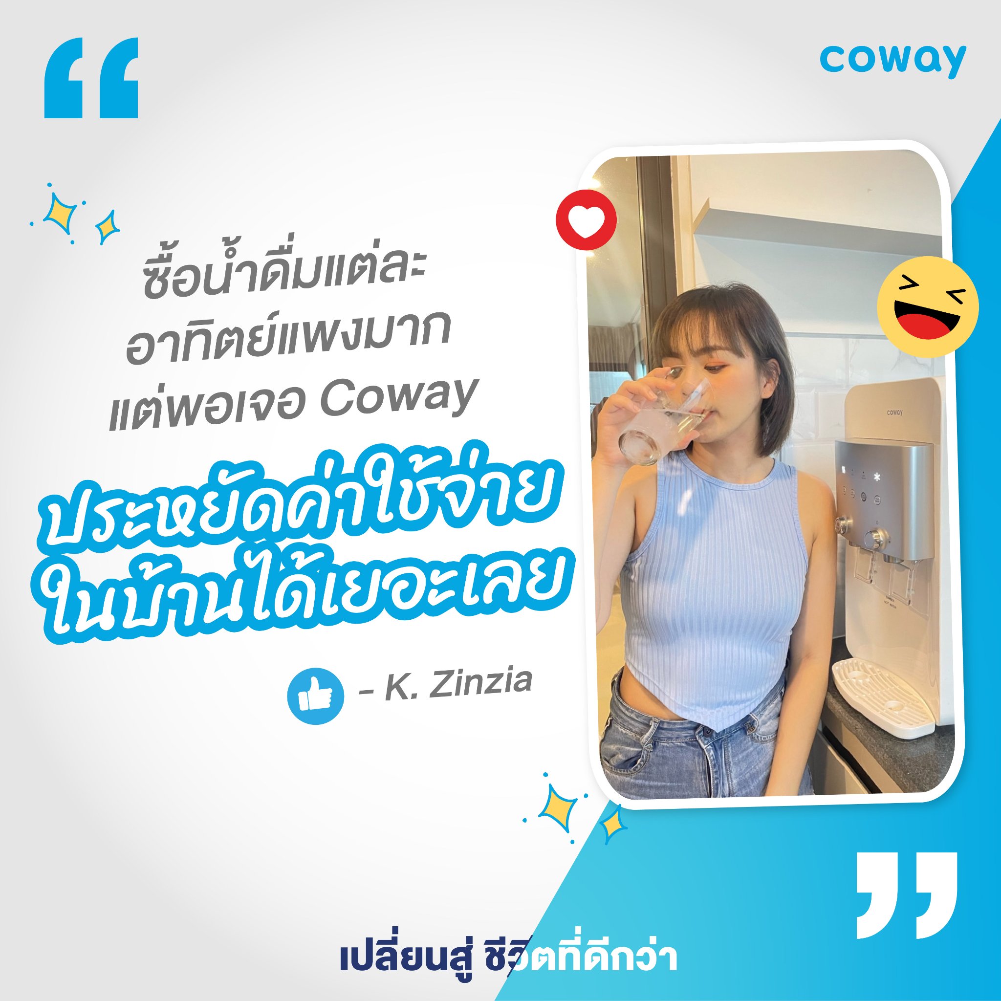 ตั้งแต่มา subscribe กับ coway การดื่มน้ำวันละ 8 แก้วกลายเป็นเรื่องง่าย เมื่อมีเครื่องกรองน้ำจาก Coway ก็ทำให้การดื่มน้ำง่ายและสะดวกมากยิ่งขึ้น