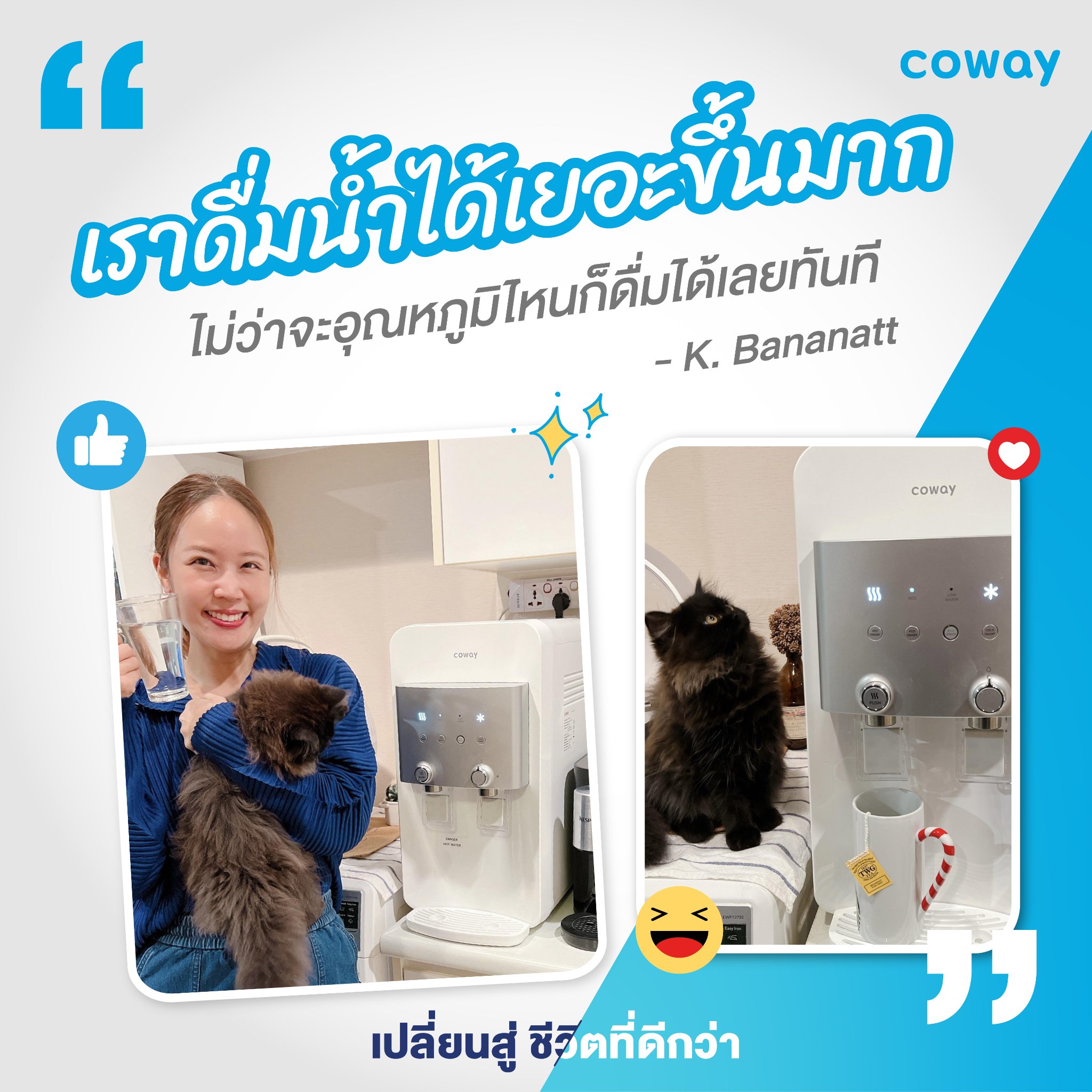เต็ม 100 ไม่หัก สำหรับคนมีแมว 🐱 เพราะสุขภาพของแมวมาเป็นอันดับ 1 และแมวต้องดื่มน้ำสะอาดเท่านั้น Coway ตอบโจทย์ที่สุด 🩵 ได้ดื่มน้ำสะอาดทั้งคนทั้งแมว